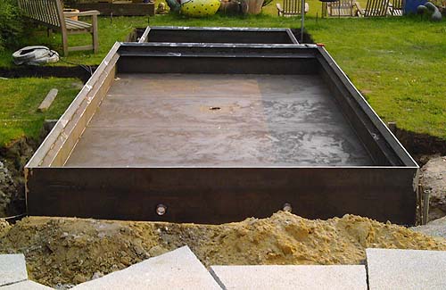 z.B. Wasserbecken für den Garten- und Landschaftsbau aus Stahl, Edelstahl, etc. oder Einffassungen für einen Messestand: